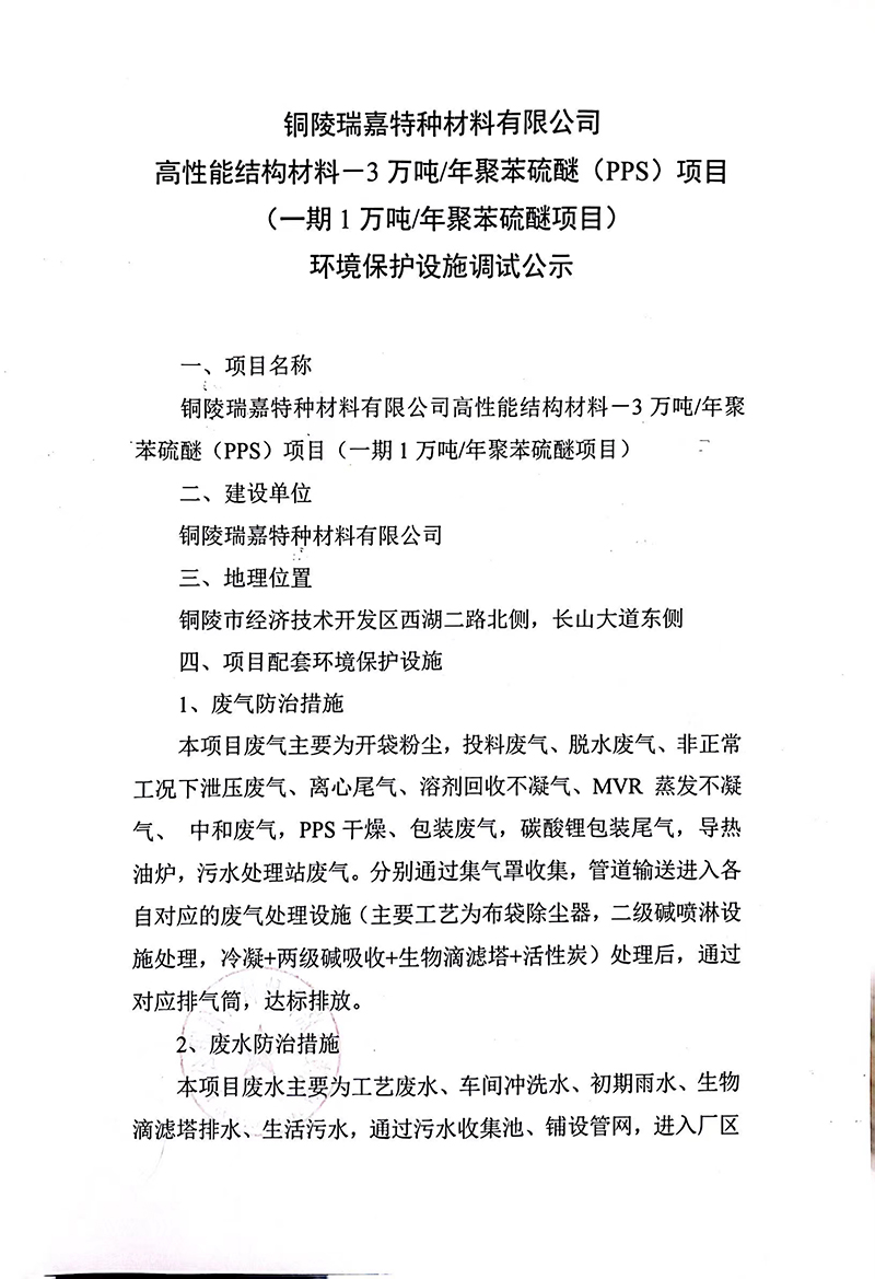 高性能結(jié)構(gòu)材料-3萬噸/年聚苯硫醚(PPS)項目 (一期1萬噸/年聚苯硫醚項目) 環(huán)境保護設(shè)施調(diào)試公示