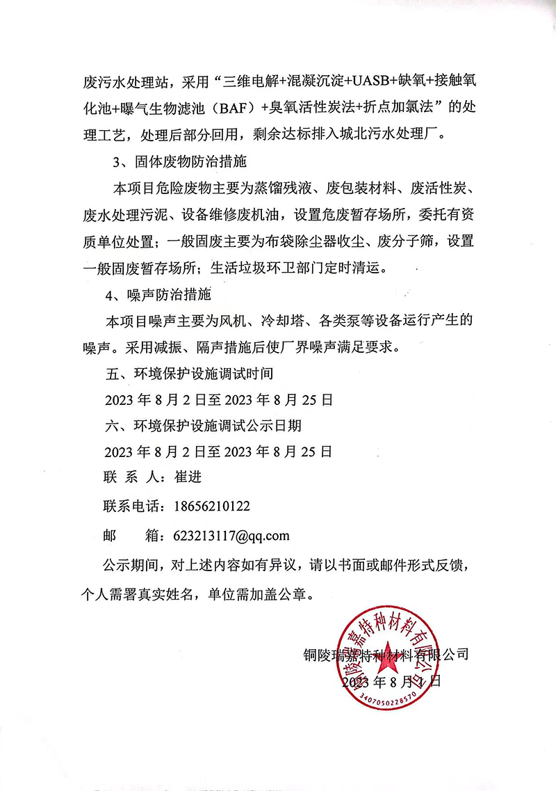 銅陵瑞嘉特種材料有限公司 清潔生產(chǎn)審核公示
